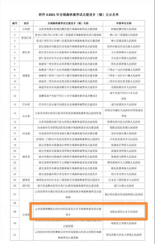 雙柏縣愛尼山鄉(xiāng)入選2021年全域森林康養(yǎng)試點(diǎn)建設(shè)鄉(xiāng)