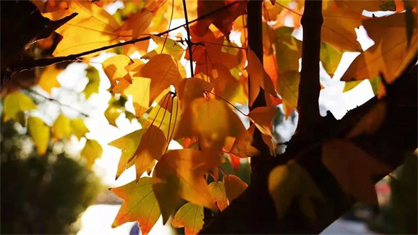 在冬日和煦的陽光下,紅葉色彩更加濃艷,微風拂過的瞬間仿若一片燃燒的火海,美不勝收。
