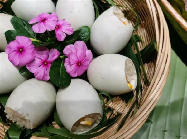 竹筒飯這一簡食,古時有之,過去傣族人民上山打獵,出遠門做活,不便帶鍋帶碗,就地取材,以竹筒為器,以糯米為食。煮制出的竹筒飯有著竹子特有的清香和糯米的香甜, 喜好甜食的可以沾上蜂蜜或者白糖入口,軟糯的口感加上甜蜜的味道,這道美食簡直是喜好糯食和甜食者的福音。如果覺得竹筒只有糯米飯略顯單調,還可親手在竹筒里放上自己喜歡的蔬菜或肉類,DIY一個定制竹筒飯,看著剛出爐的竹筒飯,好吃到一口氣吃下一整節都不在話下。