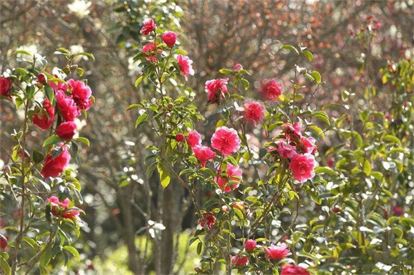 美麗的山茶花在枝頭盛放