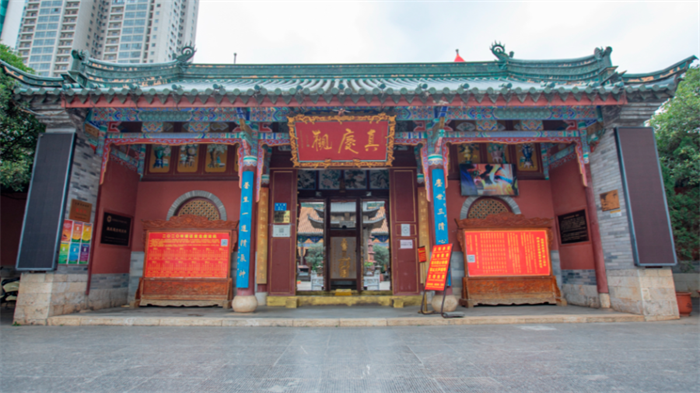 真慶觀始建于元代,原名“真武祠”。明宣德六年(公元1431年)重建,更名“真慶觀”,明正統年間、清乾隆年間都增修過。現存真慶觀由真慶觀、都雷府和鹽隆祠三部分組成。重要古建筑有紫微殿、老君殿、都雷府、火神廟、鹽隆祠等。是昆明市區現存占地面積最大,保存元明清三代建筑最完整的道教古建筑群。