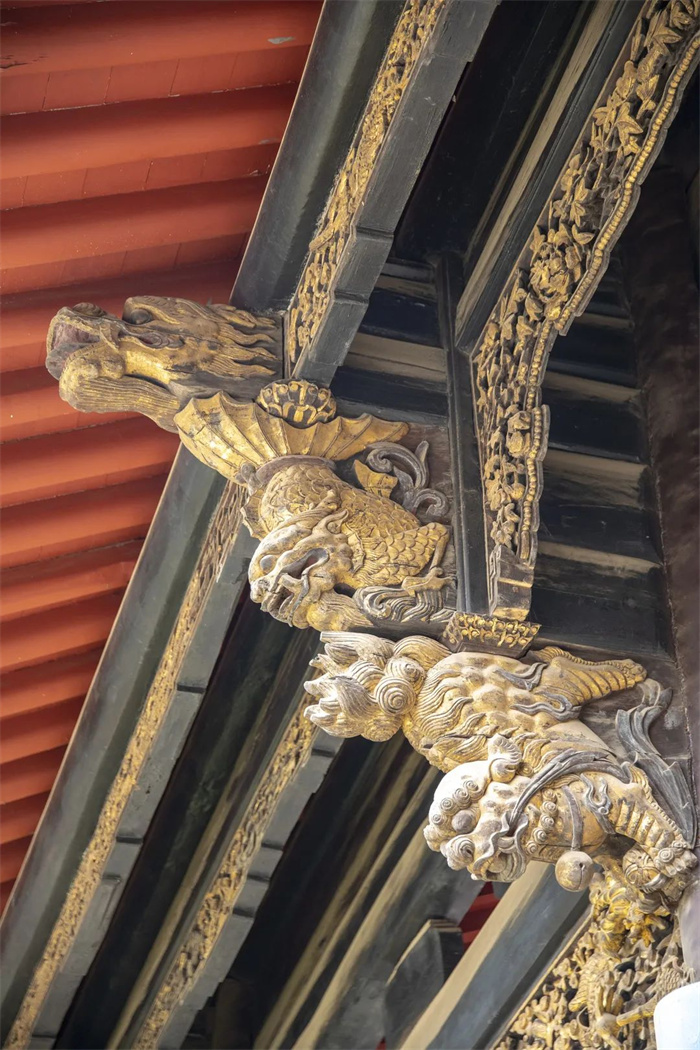 流連于整個真慶觀,觀里造型別致的亭臺樓閣、樓宇水榭,濃縮凝練著華美馥郁的中式美學,細枝末節里的精雕細琢,總在不經意間送上美的視覺驚喜,讓人感慨匠心獨具。