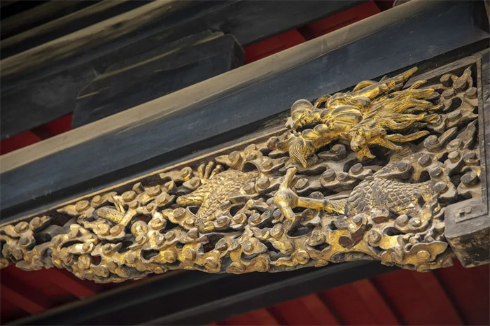 整座大殿,面闊三間,單檐歇山頂,金黃色琉璃瓦飾,飛檐戧脊上置走獸,國風滿滿,氣勢恢弘。