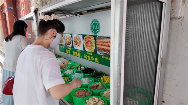 供食客選擇。很多人喜歡吃酸辣粉的原因主要是可以按自己的喜好一次性選擇很多菜品,口味分為酸辣、麻辣和酸麻辣