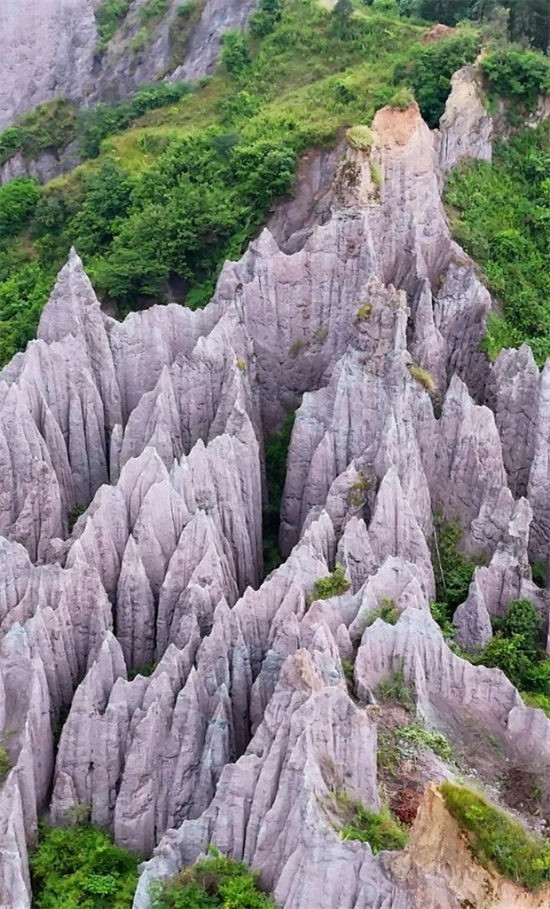 山環樹茂,綠意與褐黑的土色相映成趣。深壑仰瞻,迎客松舒展枝葉,似在頷首致意,為這片靜態的土林平添了幾分靈