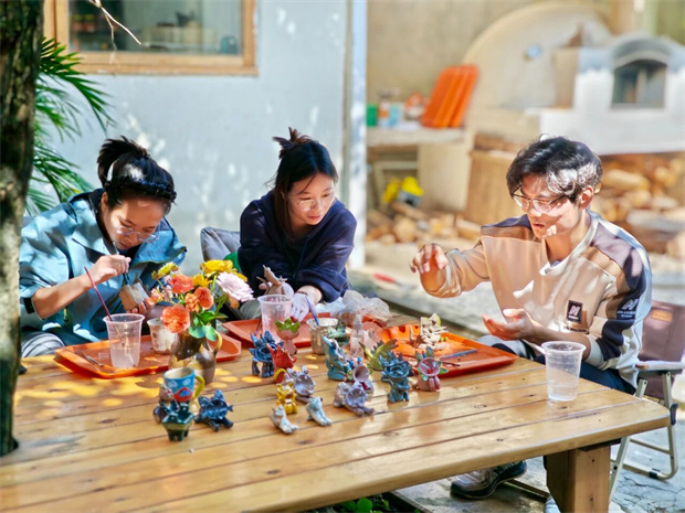 花,品過咖啡,不妨轉入手作工坊,親手捏一只拙樸可愛的瓦窯貓,或拓印一幅充滿祈福意味的甲馬,讓古老技藝在指
