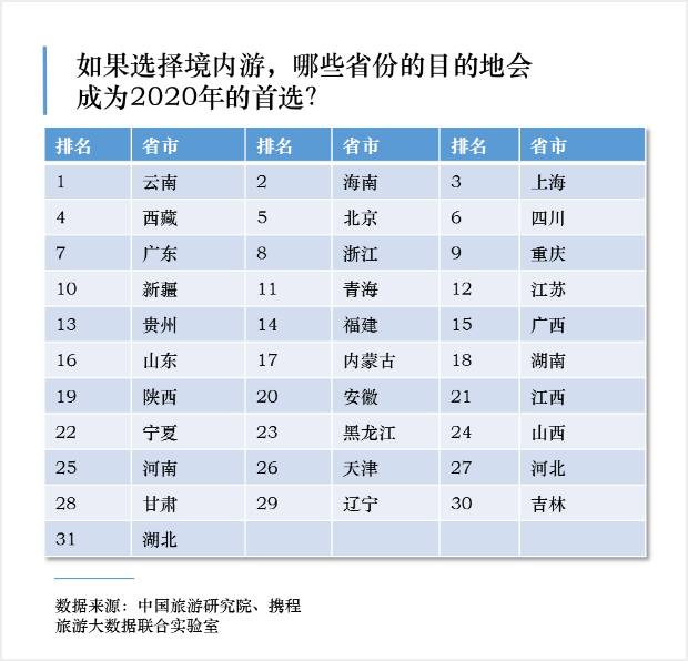 2020年疫情過后國內游熱門目的地 云南位居第一
