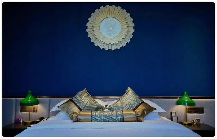 酒店輕奢的裝修風格完全契合“人們的顏值審美”,這些從視覺可見的精致設計,貫穿在酒店的每一個細節。從酒店單獨劃分出區域的書吧,每個樓層的中空設計,房間內色彩鮮明的搭配,到中西混搭的裝飾,都是法式文化與中式文化完美碰撞。