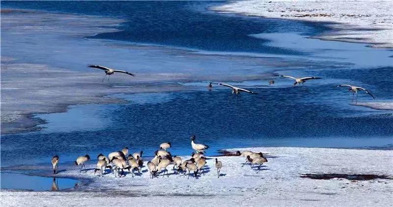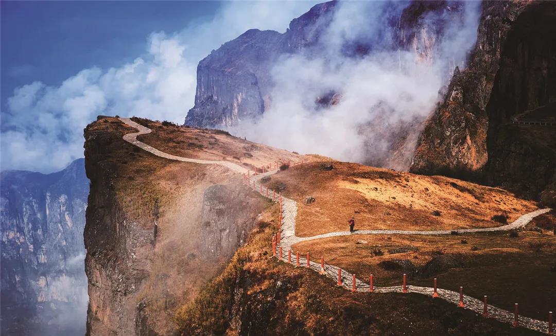 如若遇到陰雨天,大山包上就被濃濃的云霧籠罩,站在高處一眼看去,云海翻騰、云霧彌漫,如若運氣好,還會遇到大山包的精靈——黑頸鶴,它們在云霧中行走、翱翔,如夢如幻,仿佛人間仙境。