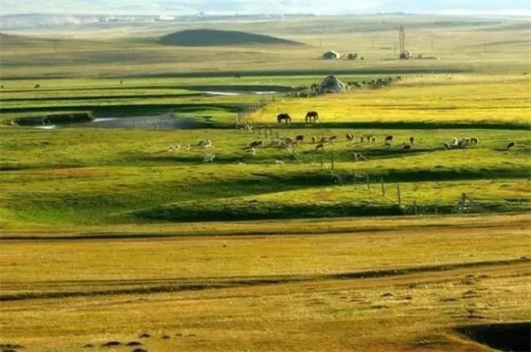 小丘、低洼隨意地散布在草場上
