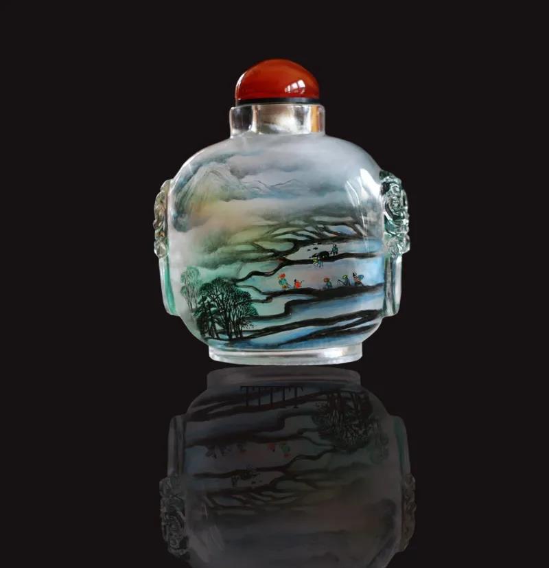 內畫出現于清代,是我國特有的傳統工藝,素以“寸幅之地具千里之勢”著稱,起源于畫鼻煙壺,它是以特制的細筆,伸入玻璃、水晶、琥珀等材質的壺內反向作畫。現代內畫技藝有京、冀、魯、粵、秦等流派。