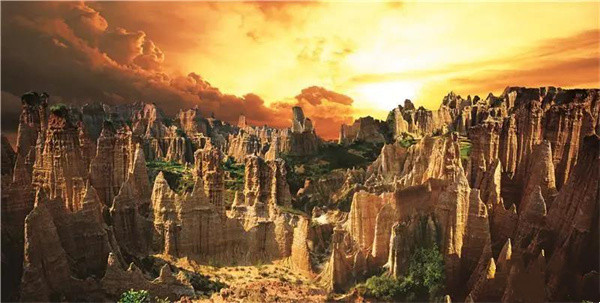 土林層層疊疊的泥土并非都是單一的黃色,它會隨著光線的變化呈現(xiàn)出紅、綠、紫、白、灰等豐富的色彩。如遇日出日落,金色的日光打在土林側(cè)面,金黃赤紅等濃烈的色彩瞬間被激發(fā),渲染出一幅極致絢爛的畫卷。每個人在土林按動快門,都能拍出精彩絕倫的作品。