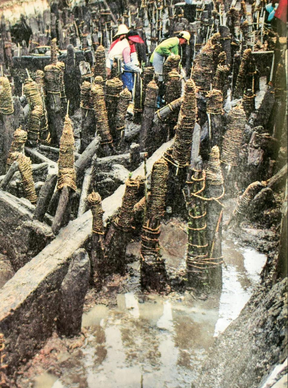 劍川縣東南面有一個(gè)7.5平方千米的劍湖,海門口遺址位于劍湖出水口。民間傳說很久以前劍湖周圍曾有一個(gè)繁華的村落,被稱為“水寨”,后來水寨消失后,又曾出現(xiàn)過一個(gè)輝煌的“羅魯城”。1957年、1979年、2008 年間,劍川縣海門口遺址先后進(jìn)行過三次考古發(fā)掘,共出土各類遺物約3000件, 包括陶器、石器、骨角牙器、木器、銅器、鐵器、動(dòng)物骨骼和農(nóng)作物遺骸等 8 類,其中銅器共發(fā)現(xiàn)44件,證實(shí)了該遺址是云南青銅文化發(fā)源地。遺址內(nèi)還出土了制造銅鉞的石范,可以進(jìn)一步確定這批青銅器為當(dāng)?shù)刂谱鳌?