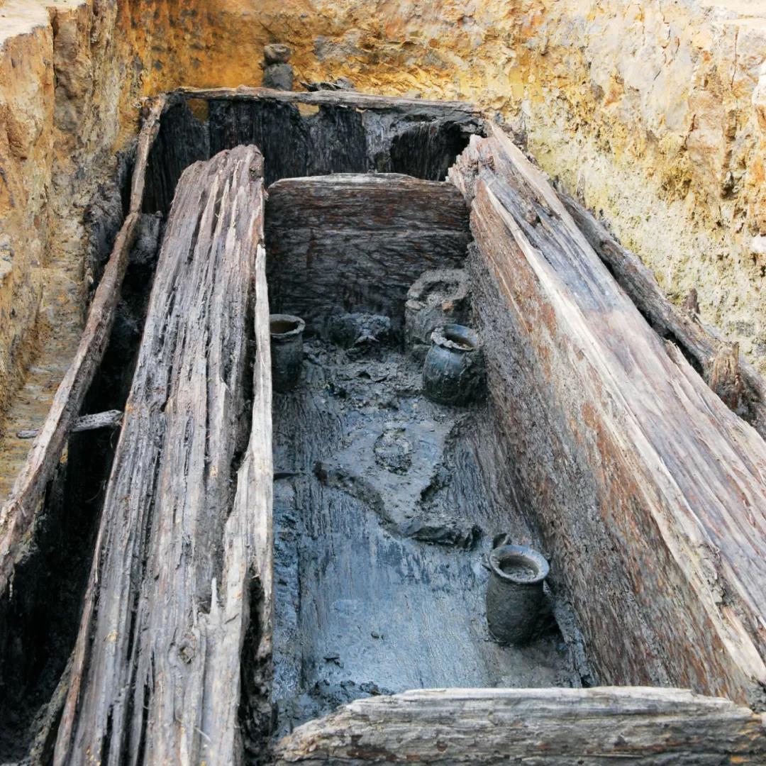 在祥云大波那村一處公路邊,現(xiàn)代化屋舍間矗立著一座風(fēng)格古樸的亭子,亭內(nèi)有一塊石碑,記錄著上世紀(jì)60 年代曾在此進(jìn)行的一次震驚全國(guó)的考古發(fā)掘。其時(shí)出土的銅棺鑄造年代距今2350多年,約為戰(zhàn)國(guó)初期,是迄今云南出土的戰(zhàn)國(guó)時(shí)期最大的單件青銅器,也是我國(guó)僅有的保存完整的青銅實(shí)用棺。此后,大波那村又相繼出土了銅劍、銅釜、銅鋤等幾十件銅器。然而,對(duì)于這個(gè)“大頭領(lǐng)所在的地方”,歷史之門才剛剛開啟。
