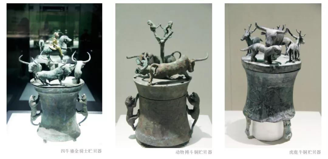 貯貝器是所有滇青銅器中最值得說一說的器具,每個(gè)貯貝器上都呈現(xiàn)出復(fù)雜多樣的裝飾場(chǎng)景。再加上器具背后暗藏的身份象征、商業(yè)發(fā)展等等內(nèi)容,使得這個(gè)古代的存錢罐意義非凡,成了云南青銅文化的典型代表。