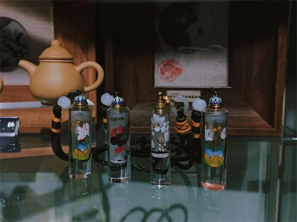 依托旅游大省的市場背景,滇派內(nèi)畫的產(chǎn)品也聚焦于旅游商品。在堅守傳統(tǒng)工藝的基礎(chǔ)上,根據(jù)消費者的需求,在原有的把玩、觀賞價值上不斷創(chuàng)新,設(shè)計具有實用性的作品。掛件、筆筒、茶葉罐、香水瓶等一系列融合傳統(tǒng)技藝,又不乏時代感的“伴手禮”不斷加入滇派內(nèi)畫家族,利用抖音、微信公眾等新媒體平臺來推廣滇派內(nèi)畫,并不斷參加“高端私人訂制”和各類展會、博覽會,全力推廣滇派內(nèi)畫,廣受各界好評。