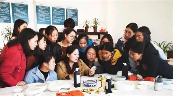 據(jù)了解,滇派內(nèi)畫的傳承,一部分是在學(xué)校通過宣講,招收學(xué)生;另一部分則主要是教授慕名而來的愛好者。孫鴻雁教授、傳承的主陣地則是在高校。從2000年開始,她陸續(xù)在云南藝術(shù)學(xué)院、云南民族大學(xué)、昆明理工大學(xué)等高校開設(shè)內(nèi)畫選修課,“在高校做傳承,生源穩(wěn)定,傳播面廣,學(xué)習(xí)周期也有保證。”她說道。